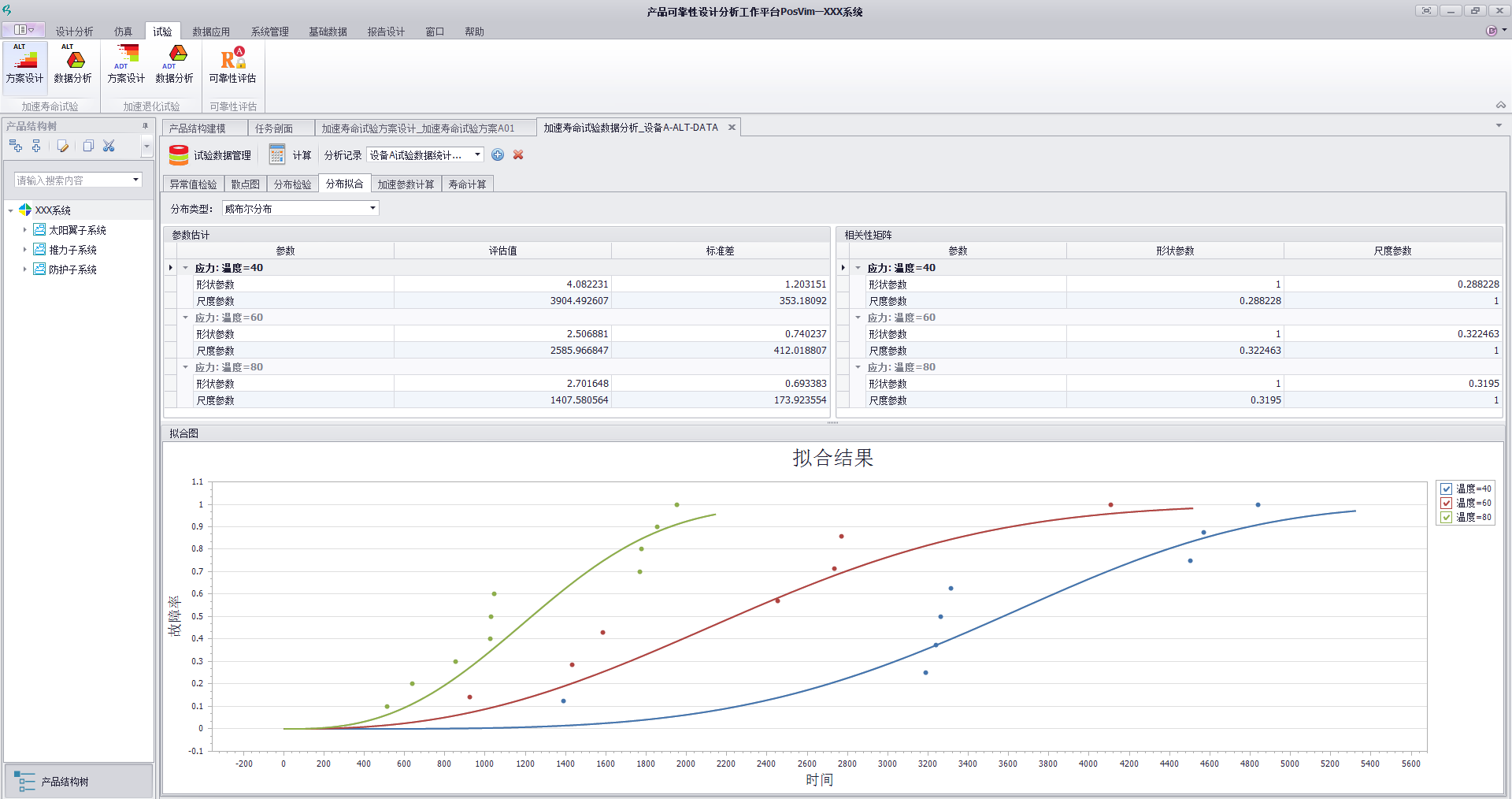 ※加速寿命试验数据处理支持散点图、异常值检验、分布检验、分布拟合、加速参数计算、寿命计算功能。