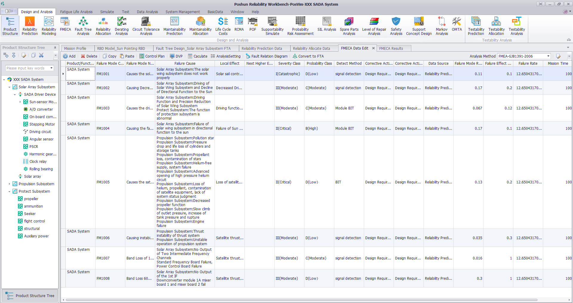 Reliability Design and Analysis Software PosVim. It is a platform for functions, performance, reliability, maintainability, supportability, testability, safety, environmental adaptability integrated design and analysis. The platform includes four sub-platforms, including design and analysis sub-platform, simulation sub-platform, test and verification sub-platform, and data mining application sub-platform. Among them, design and analysis sub-platform includes reliability prediction, reliability modeling, failure mode affect and critical analysis FMECA, FTA, fatigue life analysis, failure physics POF analysis and other functional modules; simulation sub-platform includes multi-physical environment simulation, reliability simulation, supportability simulation; test and verification sub-platform, including accelerated life test design, accelerated degradation test design, test sample optimization design, small sample test design, Bayesian test validation design, component test design, reliability test design of complex systems and complex networks; Data mining application sub-platform, including warrant prediction analysis, Weibull analysis,etc.